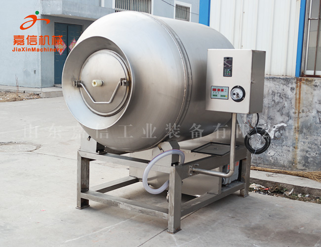 真空滾揉機(jī)是在真空狀態(tài)下,利用物理沖擊的原理,讓肉在滾筒內(nèi)上下翻動(dòng),相互撞擊、摔打,達(dá)到按摩、腌漬作用,使肉均勻的吸收腌漬,提高肉的結(jié)著力及產(chǎn)品的彈性;本機(jī)具有肺呼吸功能,讓產(chǎn)品在滾筒內(nèi)膨脹、縮小了往復(fù)運(yùn)動(dòng),改善了肉組織的結(jié)構(gòu),提高了切面效果,增加了出品率??梢栽鰪?qiáng)保水性,改善產(chǎn)品的內(nèi)部結(jié)構(gòu)。
